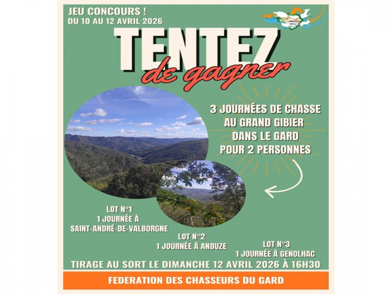 3 tickets gagnants : participez à notre tombola pour remporter une journée de chasse en Cévennes pour 2 personnes !