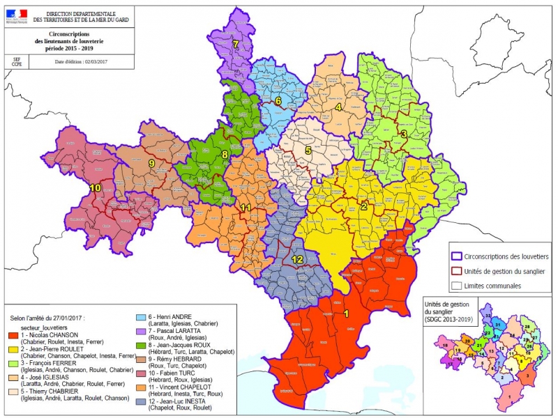 Les Lieutenants de Louveterie assurent, sous le contrôle de la Direction Départementale des Territoires et de la Mer, l’exécution des battues administratives ordonnées par le Préfet et participent aux réunions des unités de gestion du sanglier. Les Lieutenants de Louveterie sont les conseillers techniques de l’administration. Ils assurent leurs missions de prévention des dégâts en veillant au respect de la réglementation et participent à l’information auprès de la population locale.