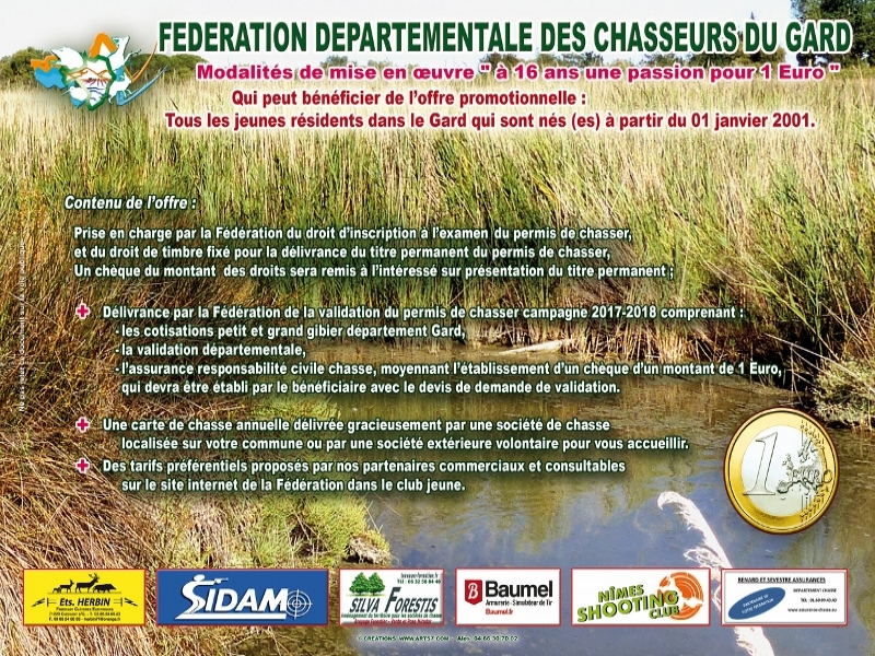 La Fédération poursuit son action « Permis à 1€ » afin de favoriser l’arrivée des jeunes de 16 ans à la chasse.