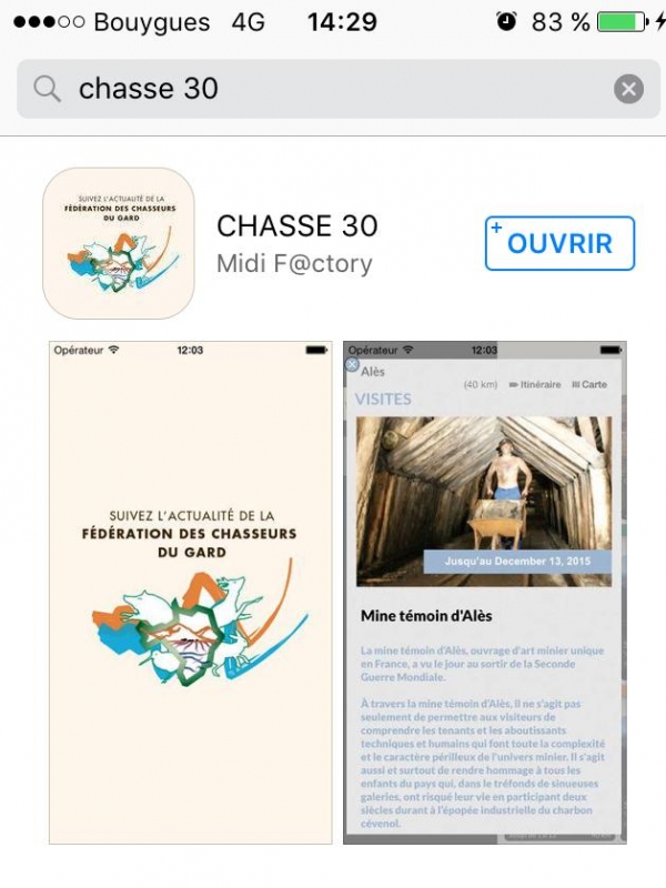 Il vous suffit de la télécharger depuis votre téléphone sous le nom de CHASSE 30 dans l'AppStore pour Iphone et Ipad et dans PlayStore pour les Androids.