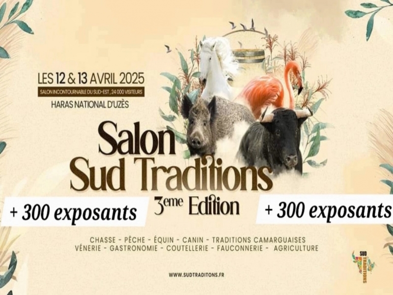 La Fédération Départementale des Chasseurs du Gard sera présente au 3ème Salon Sud Tradition et partenaire de cet évènement qui se déroulera du 12 au 13 avril 2025 au Haras National d...