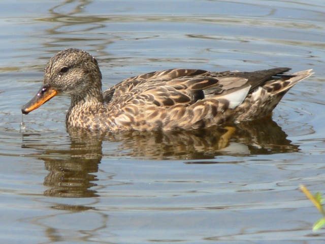 Plus petit que le Canard colvert (Anas platyrhynchos), le Canard chipeau présente un plumage nuptial sobre avec peu de contrastes. Le mâle paraît gris, son plumage étant en fait finement vermiculé, avec des couvertures alaires marron visibles surtout en vol, un ventre blanc contrastant avec le croupion noir. La femelle a un plumage majoritairement marron. Le bord du bec est jaune. Les deux sexes arborent un miroir blanc qui est plus visible chez le mâle. En plumage d’éclipse, le mâle ressemble à la femelle adulte mais reste cependant un peu plus gris. Le juvénile ressemble à une femelle adulte, avec le corps plus strié et plus tacheté sur le ventre et étant plus sombre sur le dos. La mue complète intervient entre mai et septembre (mâles) / octobre (femelles). Le jeune prend son plumage d’adulte entre août et décembre, mais certains peuvent garder leur plumage d’immature jusqu’au printemps.