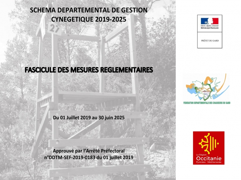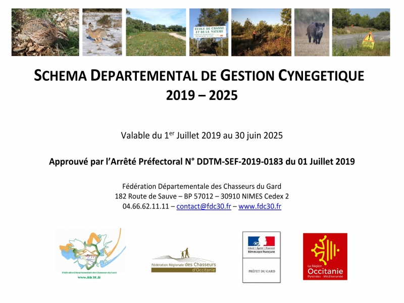En application des dispositions du Code de l’Environnement et conformément à l’Arrêté préfectoral n°DDTM-SEF-2019-0183 du 01 Juillet 2019, le nouveau Schéma Départemental de Gestion Cynégétique du Gard entre en vigueur à partir du 1er Juillet 2019 pour une durée de 6 ans.
