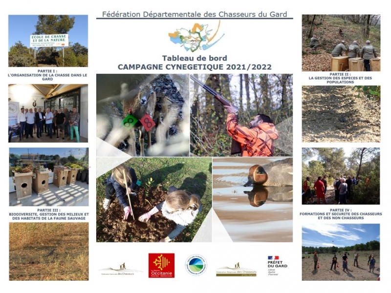 Le Tableau de Bord est élaboré par la Fédération Départementale des Chasseurs du Gard. Ce document permet à la structure de rendre compte, à ses adhérents et à ses partenaires, publics ou privés, institutionnels ou commerciaux, de ses bilans d’activités et des actions professionnelles qui ont été accomplies au titre de la campagne cynégétique 2021/2022.